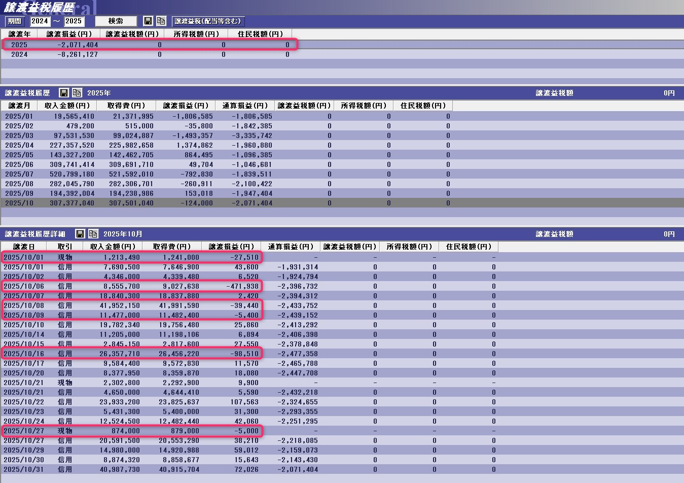 負けも勝ちも記録に残す。出ないと公平でない。負けも勝ちも意味があるものにしたいから、と前置きが長くなりましたが、2025年6月の成績は以下の通りです。マーケットスピードから画像を貼り付けてます。