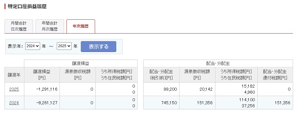 ちなみに専業としての株の2025年度の配当も加味した最終結果は以下の通りでした。一緒に2024年度も一緒に掲示です。昨年、作ってませんでしたのでね。