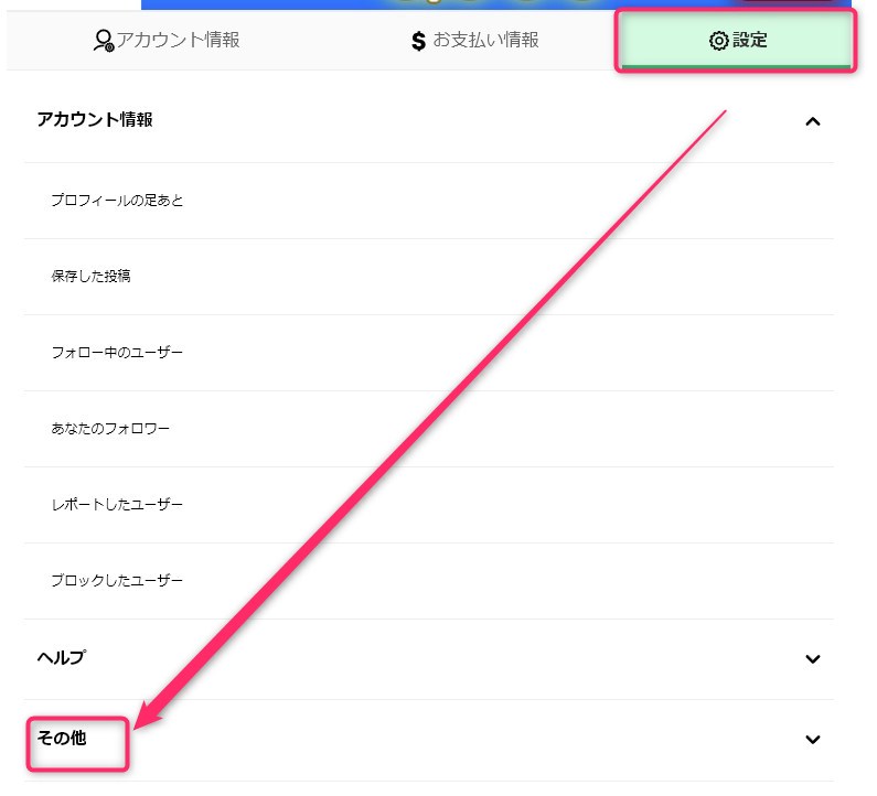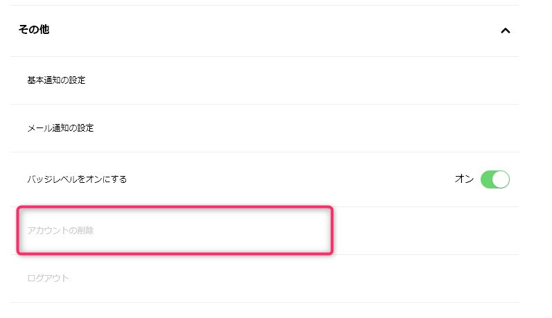 ただ、退会の仕方がわからない。ヘルプを見てもなかなか難しい。「設定」から「その他」を見ても「アカウントの削除」っていうのが無いんや