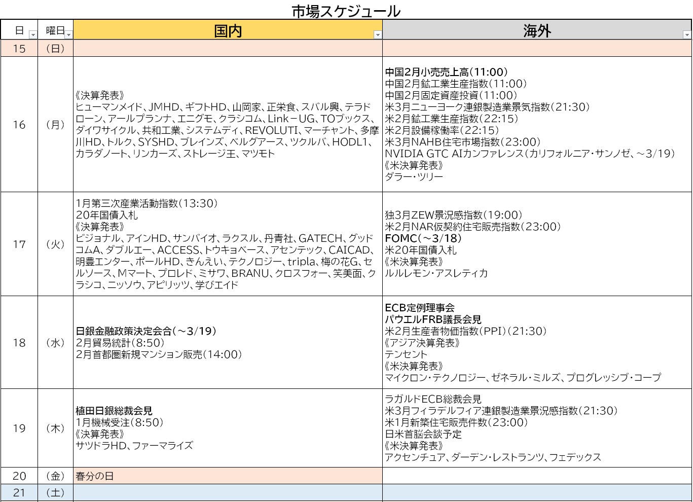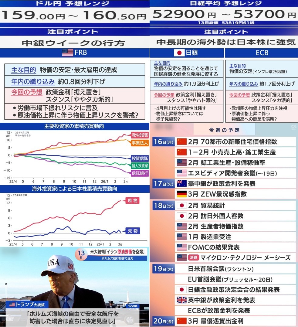 混沌としてきた世界情勢・・・本当にどの様になるのかさっぱりわからないけれど、現在は西側諸国による外科手術の準備段階的なものだと感じている。その手術が成功するのか失敗するのかわかりませんが・・・なんて思いながら今週の予定は以下のとおりです。