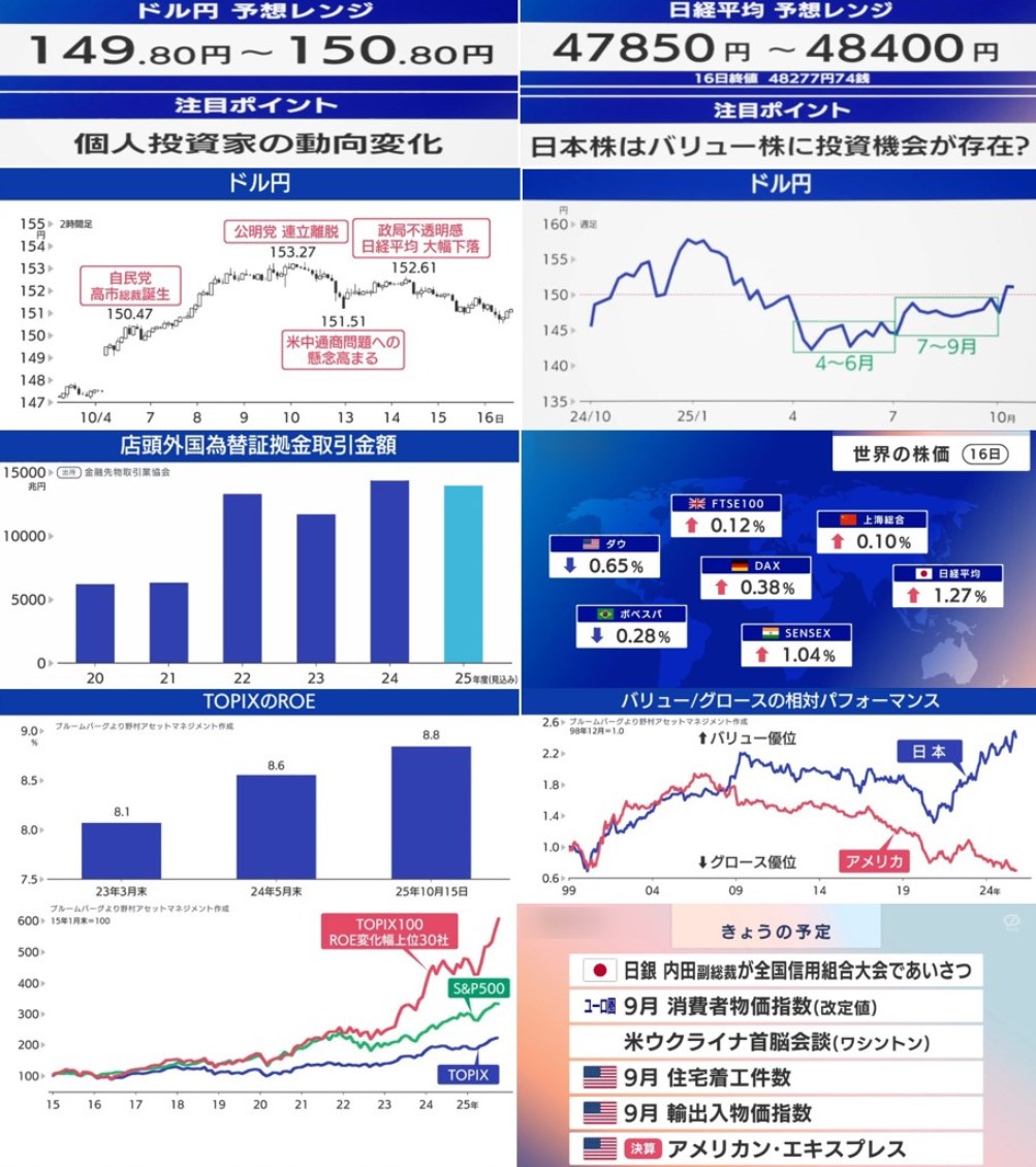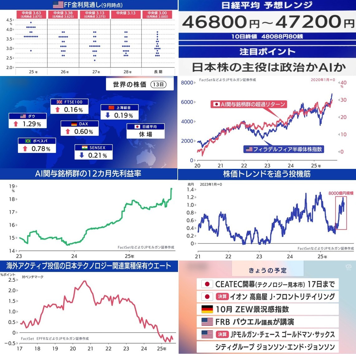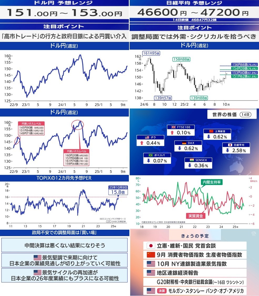 今週末の日経平均・為替のプロに寄る予想は以下の通りです。 ってか月曜日が祝日のため無しです。ワイの予想は48500@152とします。これは高市さんが総理になると仮定しての予想になります。