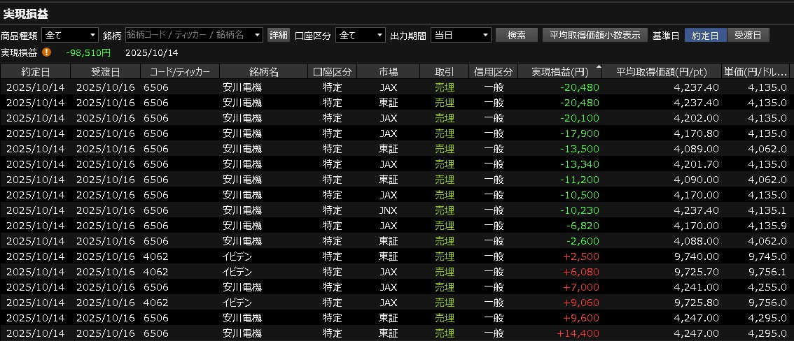 今日は安川にことごとくお金を持っていかれました。何となくこうなりそうな気がしてた。イビデンにしとくべきでした。引けドンでしたね。引け間際に大きい万株のいたがでてきたときにアカンわって思いましたよ。日経は引けピンなのにね。なんしかアカンわ。今の投資手法が良くないねんな。引け間際に4089で買って引けドンで▲27700ってね・・・アホですわ。