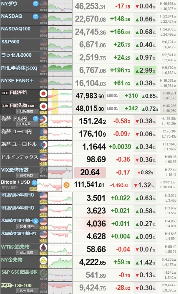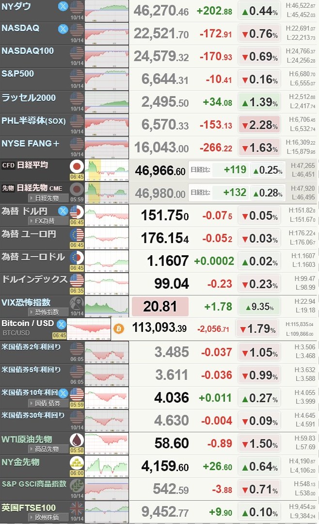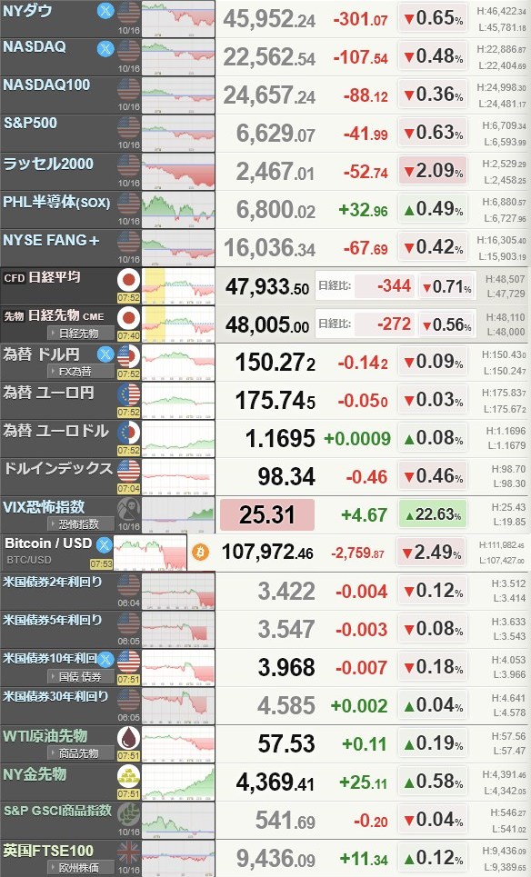 - 5 R7.10.16 政府指標が発表されないアメリカ・・・今日は日本も指標が無いのでアメリカ決算に左右されるのかなと思う木曜日(´・ω・`)
