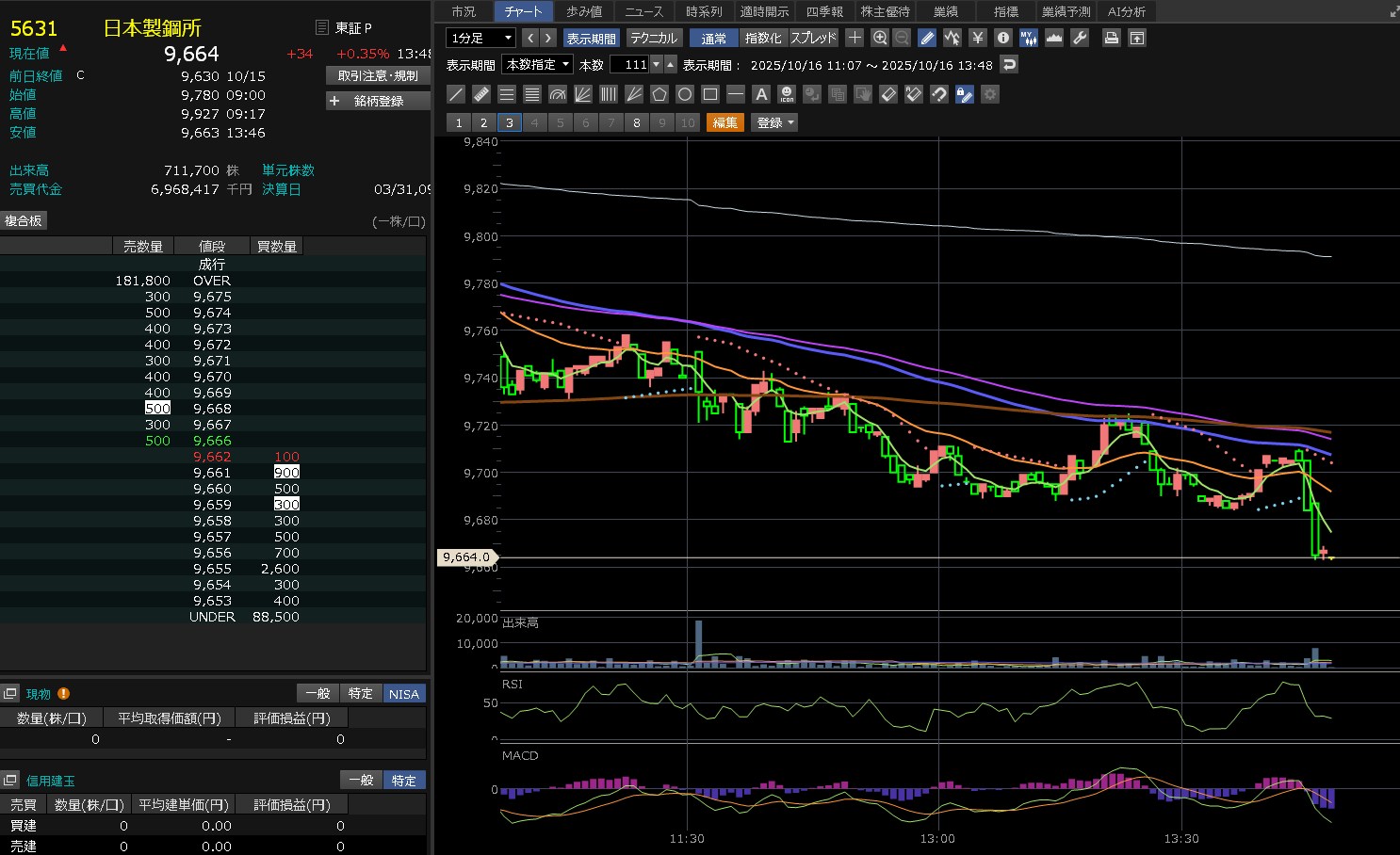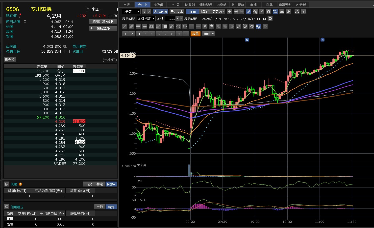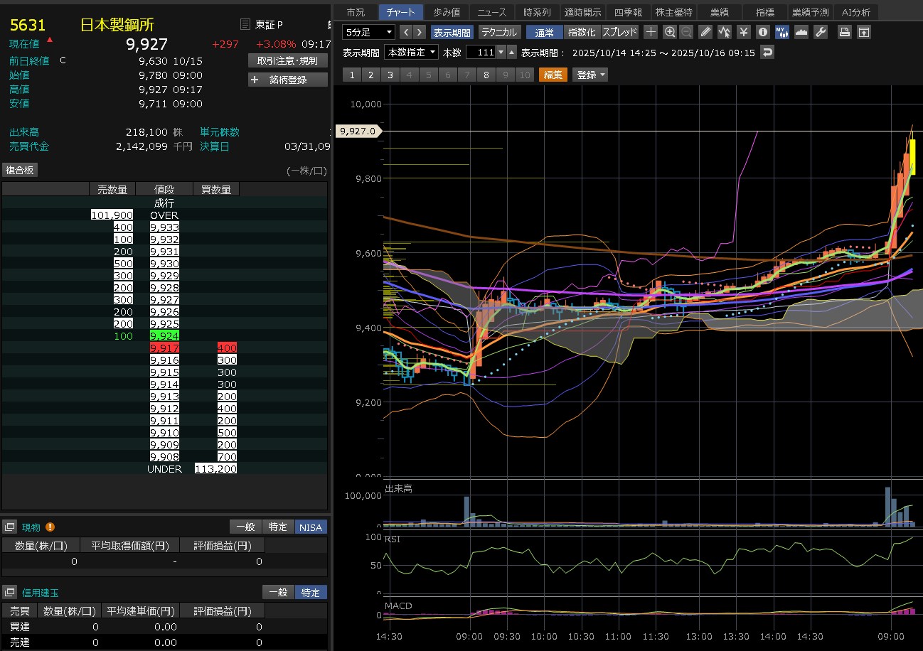 前場がはじまりました。さて、どうすっかな・・・日本製鋼もったいないことしたわ。高市銘柄・・・昨日の寄り付きでインスべきでしたね。こういうことを次に活かそう。次はいつになるかわかりませんけどね。