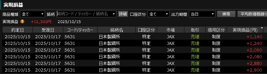 少しだけ利益を出した。その後、引け間際に買おうと構えてましたが、結局買えなかった。