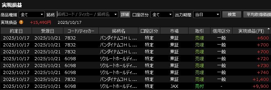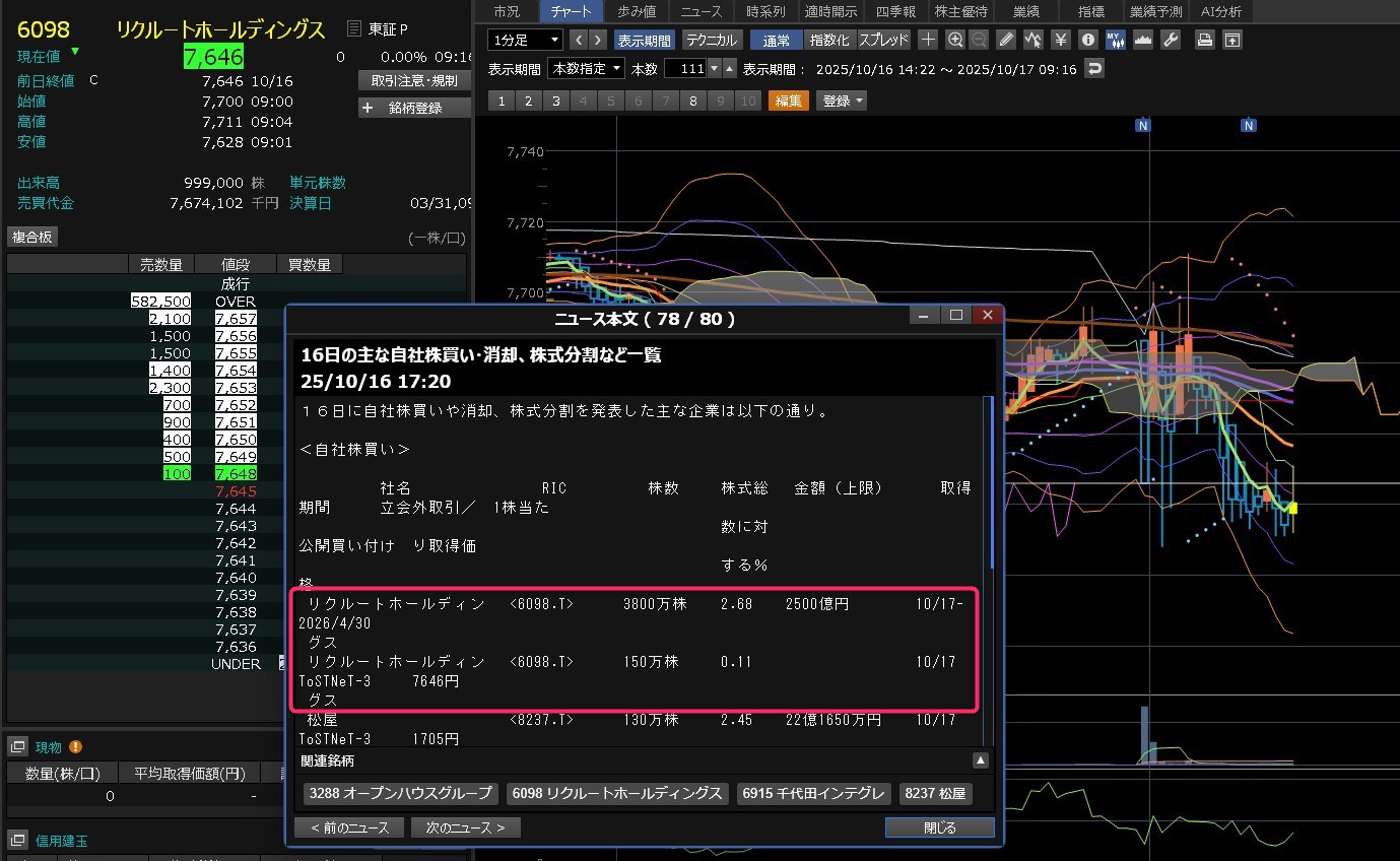 後場が始まりました。あまりにもリクルートが不憫なので購入したら・・・何も言うまい・・・
