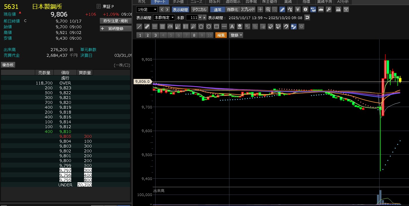 リクルートの特別買気配で入れませんでしたが、日本製鋼もこれ見てたら買ってるで!もったいない。惜しいことをしました。