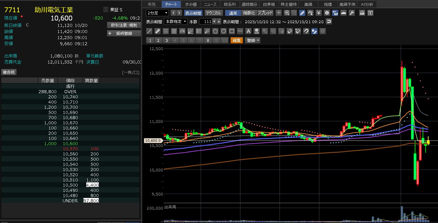 ちょっと買い物に行ってくる。高市相場・・・高い株式市場になるって誰がうまいこと言えと・・・高市銘柄はこのあたりで売りが出てそうな気がしなくもない。なんとなく明日で材料で尽くしなので逃げてんのかな。三菱重工も日本製鋼もZEMTECHもFFRIもなんか高値から下げてるんやけど・・・気になるわ。助川はもね・・・助川は高市銘柄の大本命やん。