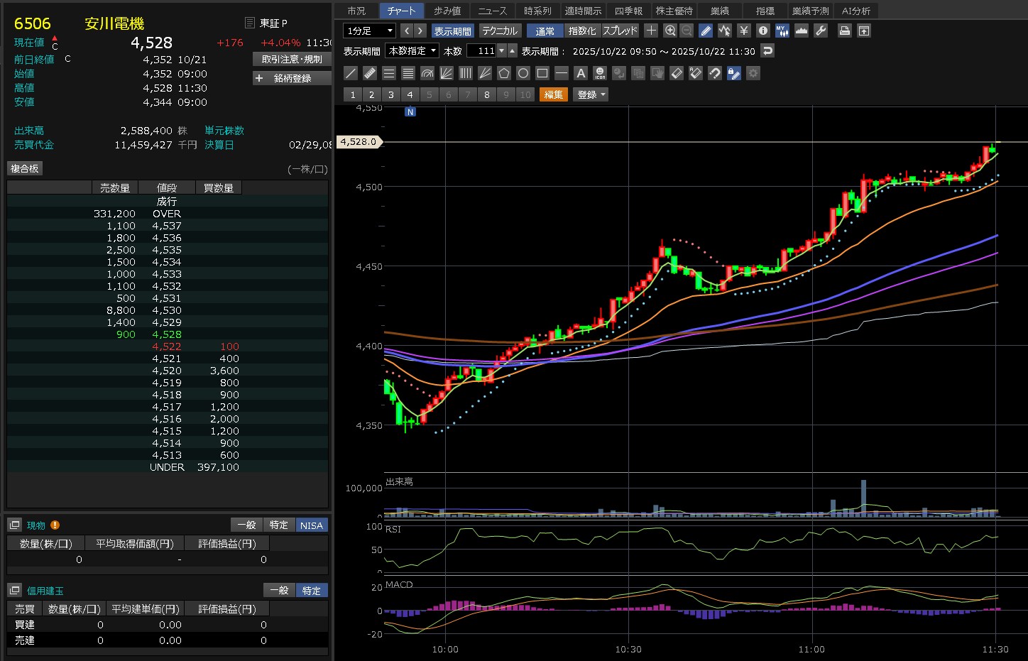 前場が終わって、安川みたら・・・なんやねんこれ・・・ほぼ押し目なく上げていったわ。