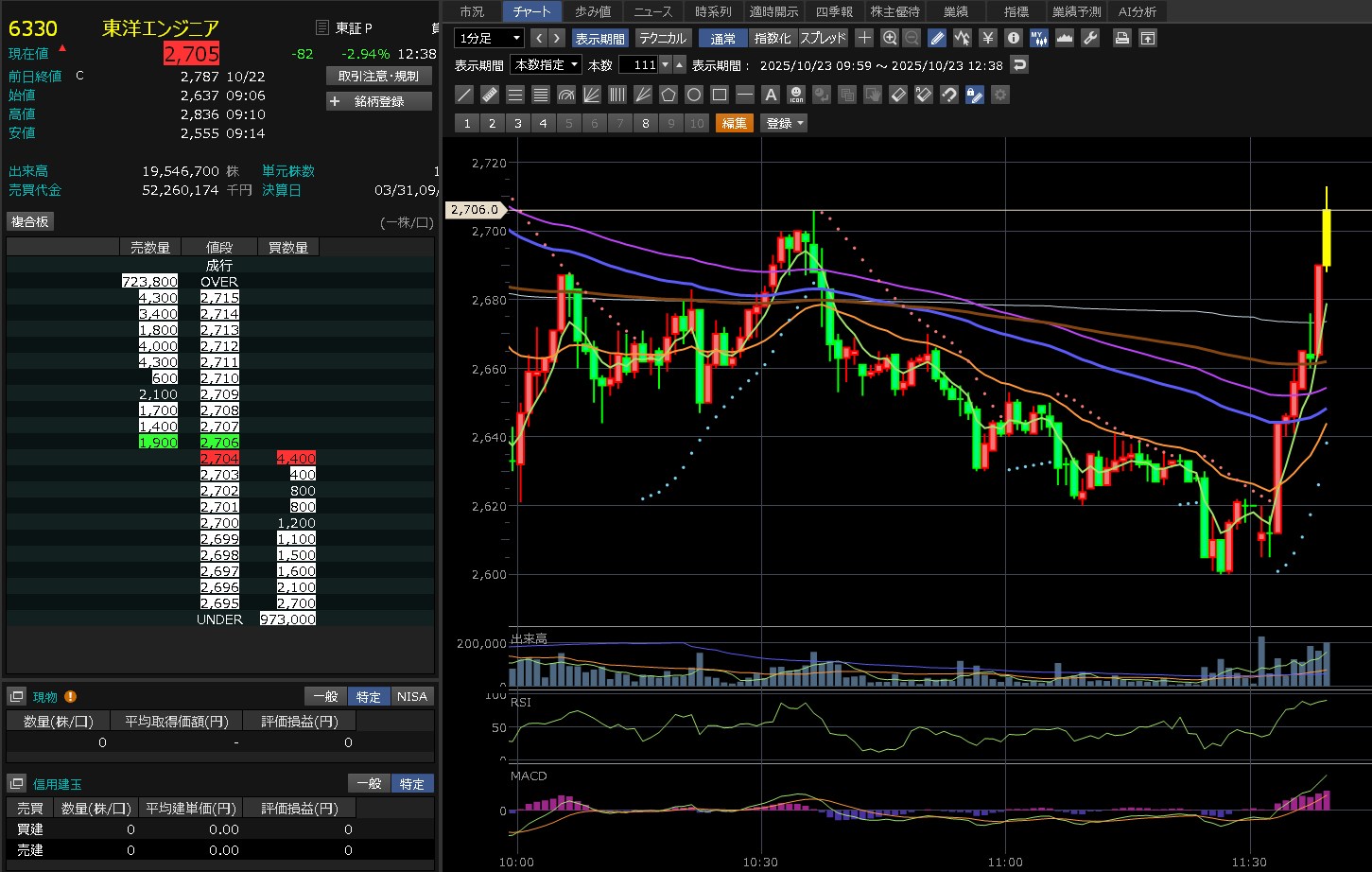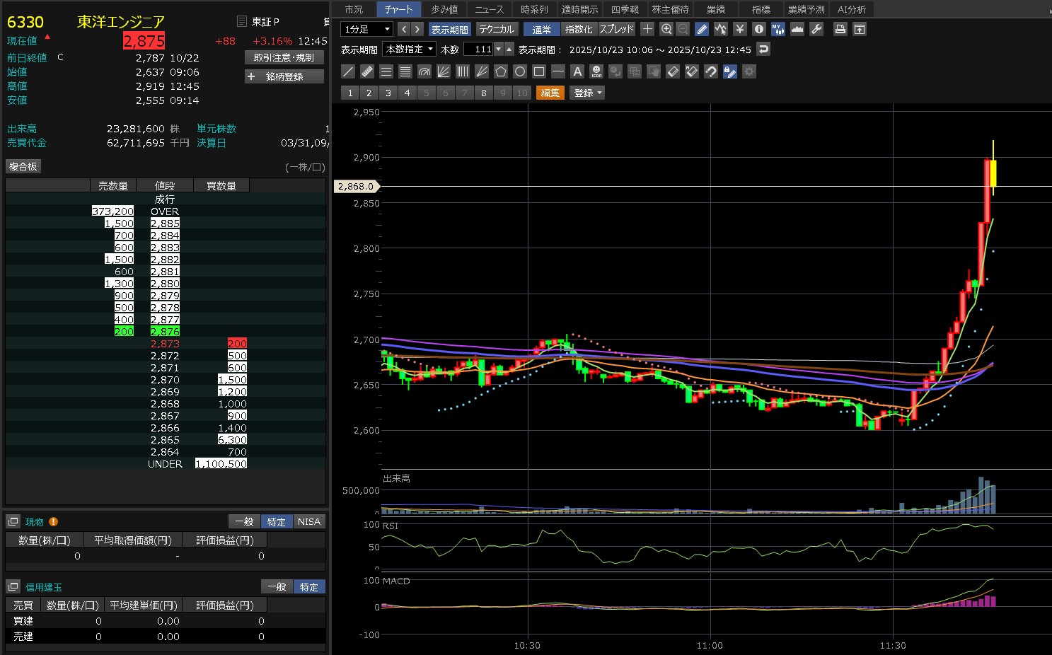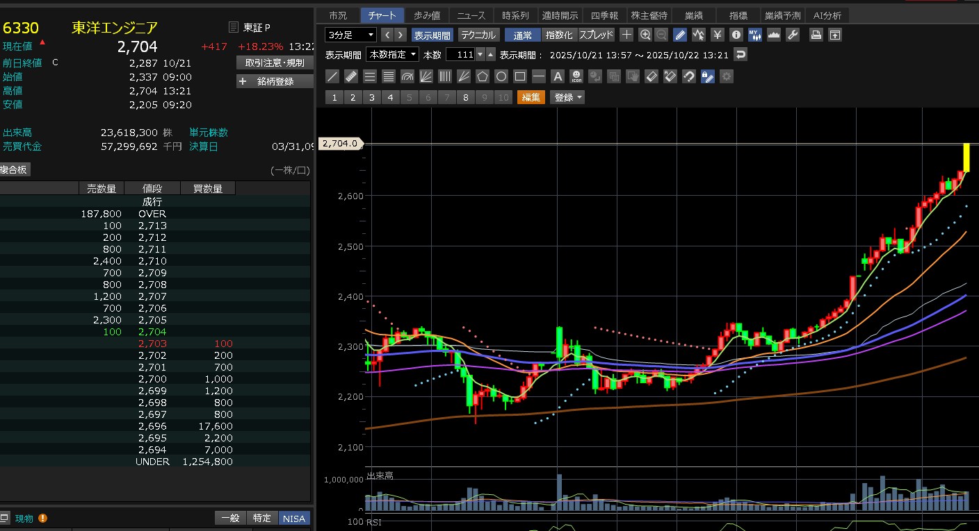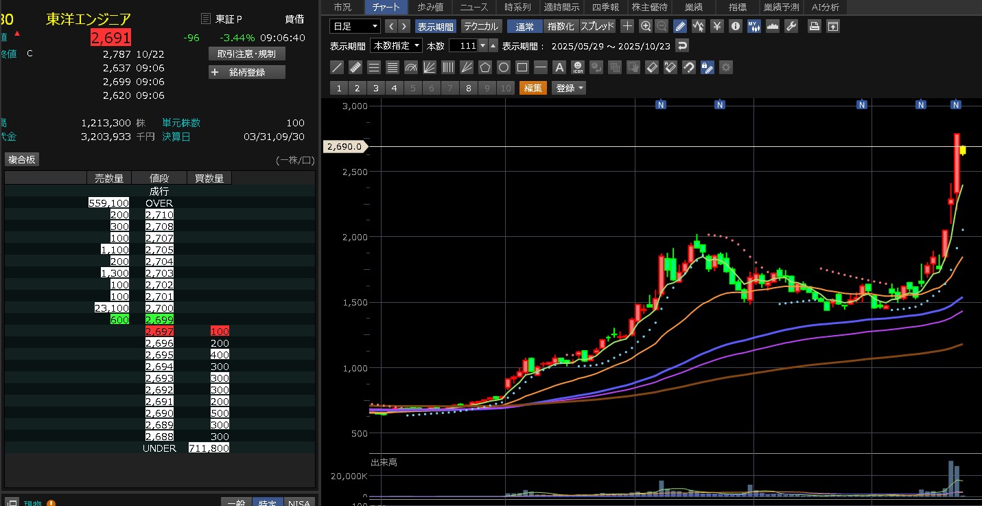 指くわえてみてるだけでしたわ。最悪っす・・・もうええけどね。東洋エンジニアリングがS高になってるからってことで、実は8620で買うか迷ってたら上げていったわ。あぁクそう。
