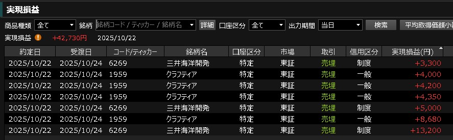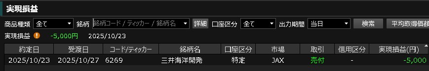あまり長く持ちたくなかったんやで!持ち越してもええわってことで三井海洋買ってましたが、持ち越しませんでした。信用はノーポジです。現物100株持ち越しです。夜間かまたは明日の寄り付きで処分予定です。