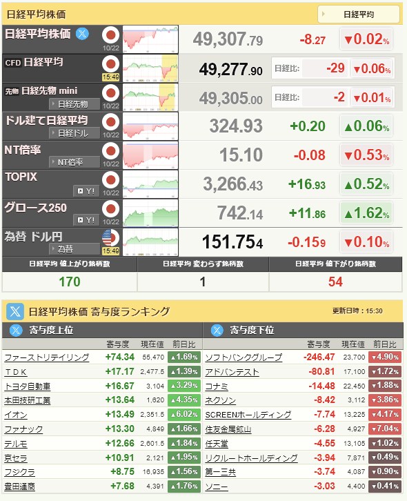 日経平均49,307.79-8.27-0.02%[15:45]米ドル/円151.74-0.19-0.13%[15:50]