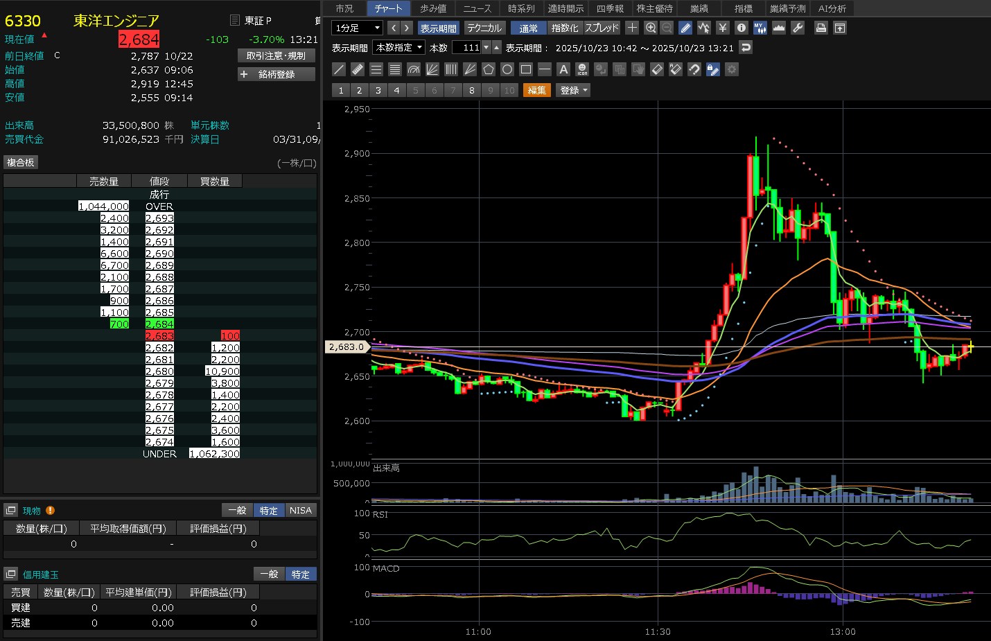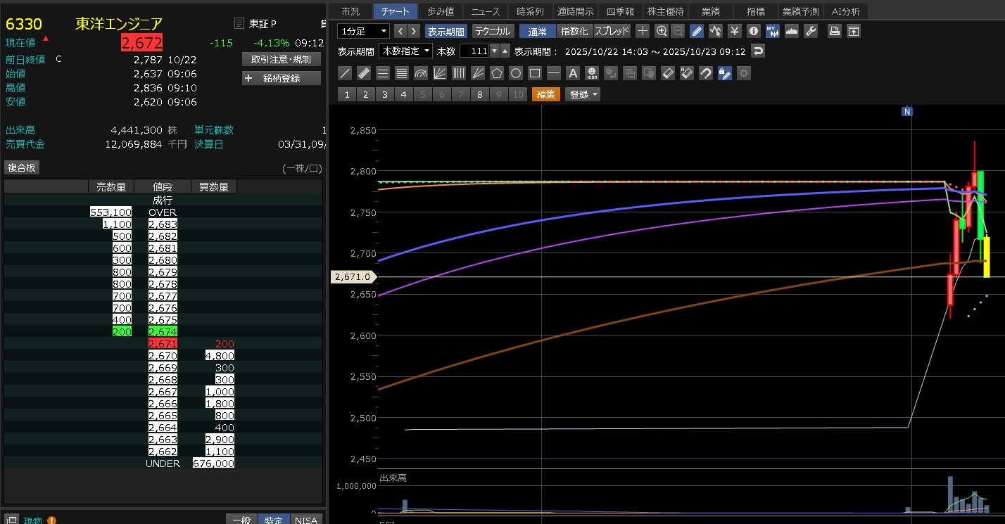 直近バクアゲ銘柄がごっつ下げてます。東洋エンジニアリングもまだ寄りません・・・どうなってるんや。これよりぞこのような気がする。買わんけど・・・
