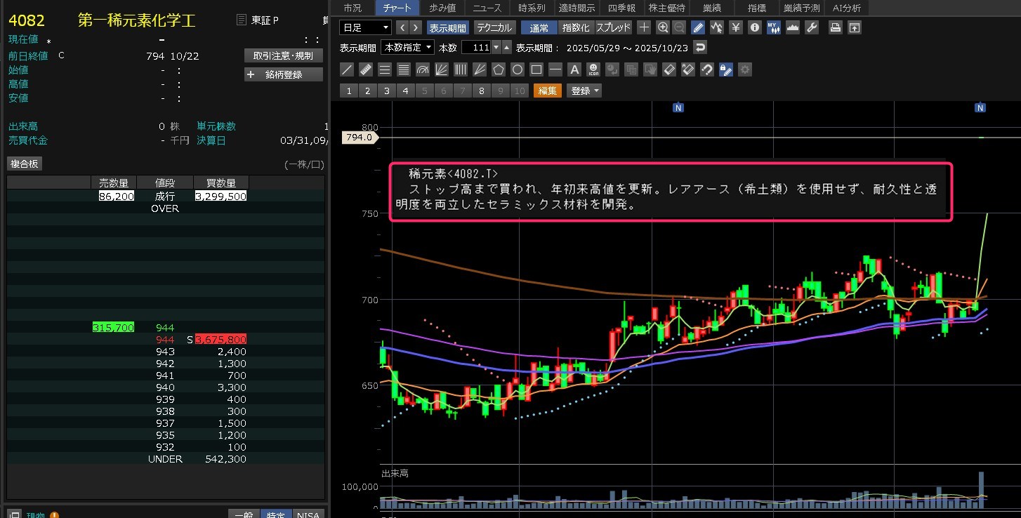もうちょっと銘柄をうまく監視しないといけない。気づくとこのザマですわ。今朝目をつけててストップ高で目を離して落ちてきたから、放置してたら、気づけばストップ高ですよ。