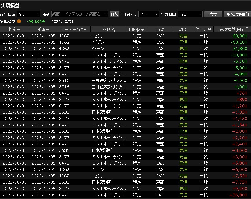もうちょっと銘柄を追いかけられるようにならないとですね。本日の取引は以下の通り・・・それにしてもキオクシアもいつまで上げるんや。レーザーテックもね。明日は日経225入れ替えによるニデックとイビデンの売買が引けに活発になるんかな知らんけど・・・今日は売買代金10兆円いったみたいですね。記録っすわ。本日も乙でした。