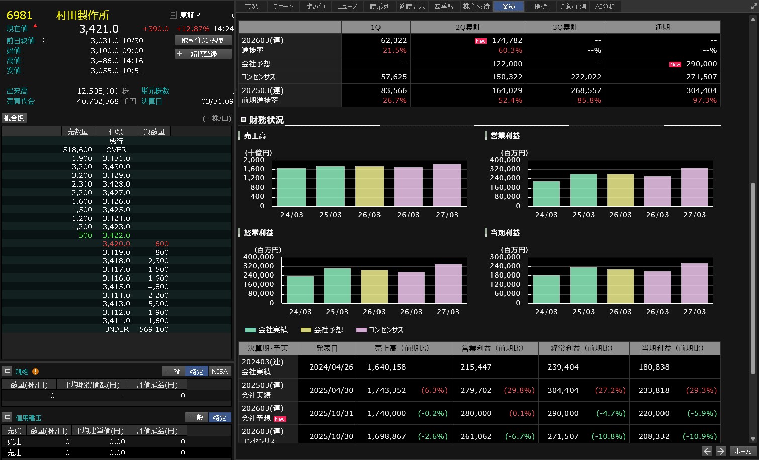 さて、現在14:22です。村田が半端ない。上がる銘柄が強いんやな。ちょっと取引を考えるわ。村田って前回全然やったのにね。なんでこんなに強いんや。そろそろ三連休に向けて売りが出るんとちゃうんかな?知らんけど・・・