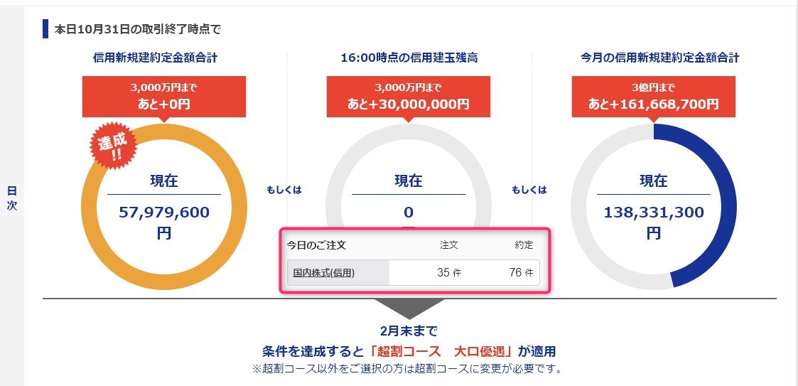 信用注文35件・・・約定76件・・・大口優遇2月末までになりました。今日はホンマに要取引したわ。自分でも感心するわ。乗り遅れとか見てるだけとかばかりでしたが、一番の失敗はイビデン・・・これは本当にアホしたわ。朝の三井住友とイビデンで16万マイナスからのスタートですからね。痛みに耐えてよく頑張った。大分と髪の毛持っていかれたけどね。ぶっちゃけSBIをそのまま引けまで持ってたほうが良かったわ。そのほうが儲かったね。@6914で引けてるね。