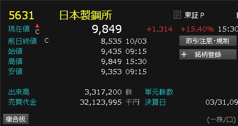 気配が出てきました。日本製鋼・・・涙目・・・空売りしてないだけ良しとしますよ。やはりポジティブサプライズ。
