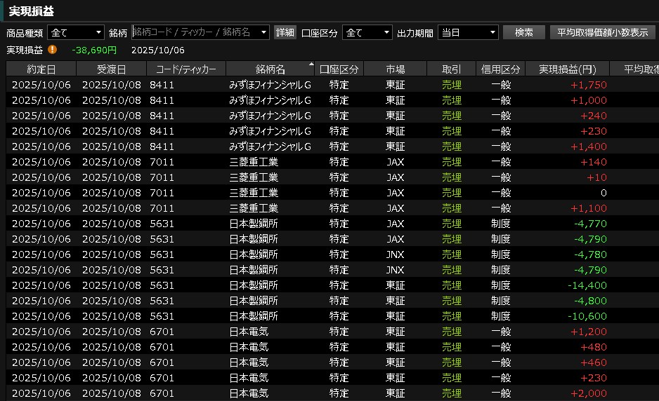 引けまで持ってたら+5万やで!それが▲5万ですからね。セコセコデイトレして結局本日は▲4万となりました。