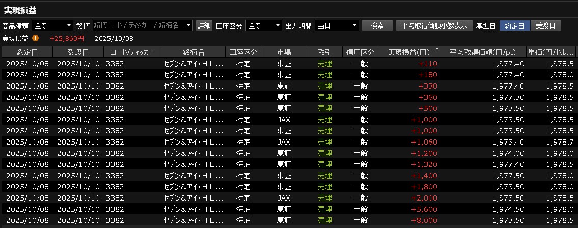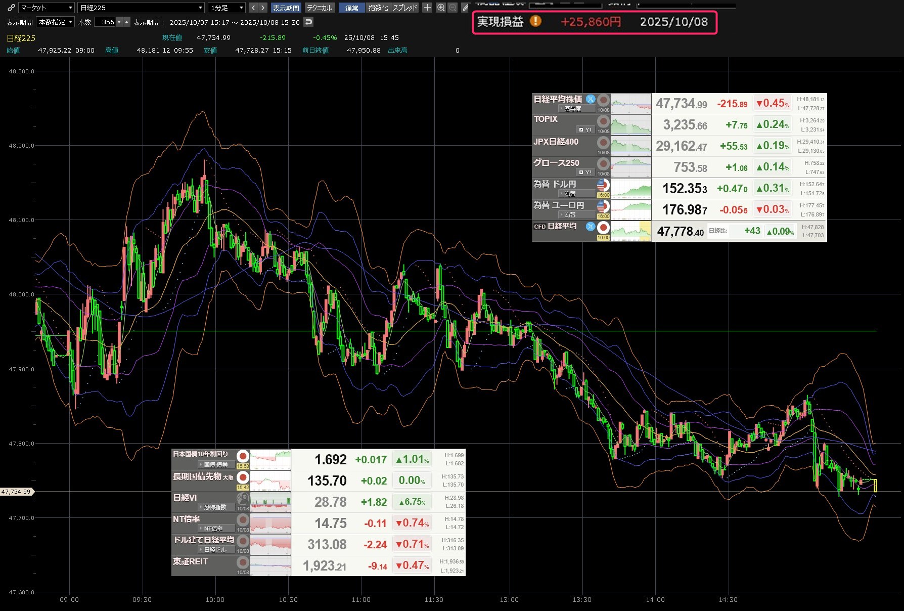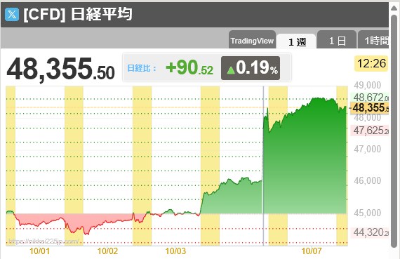 R7.10.7 今日も上昇!高市総裁のビッグウェーブに完全に乗り遅れた・・・ワイはいい波が来るまで待つことにするでって思う火曜日(´・ω・`)