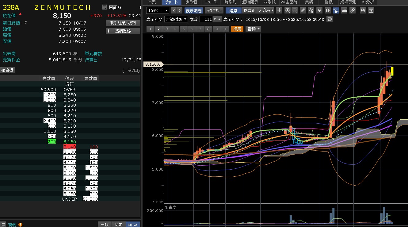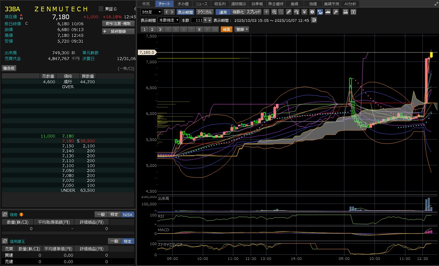 ちょっと昼寝して起きたら12:52 めっちゃあげてるやん。なんやねん。新興が一気にきたね。ゼムテック・・・またストップ高かよ。
