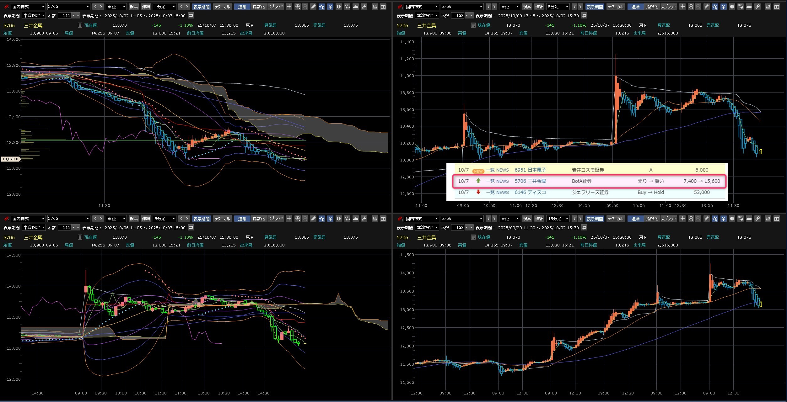 三井金属は@13088で500株買ってたんですけどね。なんだかね・・・やっぱり悔しくはある。デイトレはあまりしないほうがええんかな。今の相場環境だとね。ただ、ワイがそう思い始めたということは楽観が多くなってきたのかも知れません。さて、気配が出るまで休憩です。あぁ、あとノーベル賞受賞おめでとうございます。