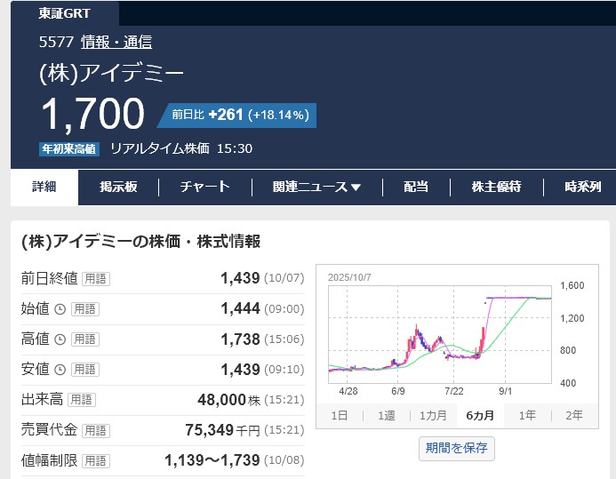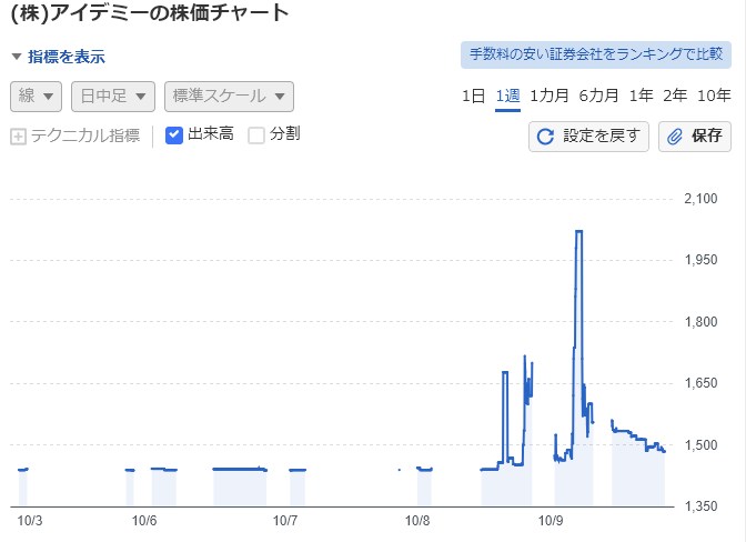 昨日のアイデミーは大幅安でしたね。ヤフー掲示板にもありましたが、口座乗っ取りによる取引のような気がしなくもない。昨日はTOB価格ぐらいまで値下がりしてました。