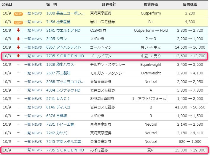 スクリンはゴールドマン売り、みずほ買いやったんやね。紛らわしい。なるほどね。