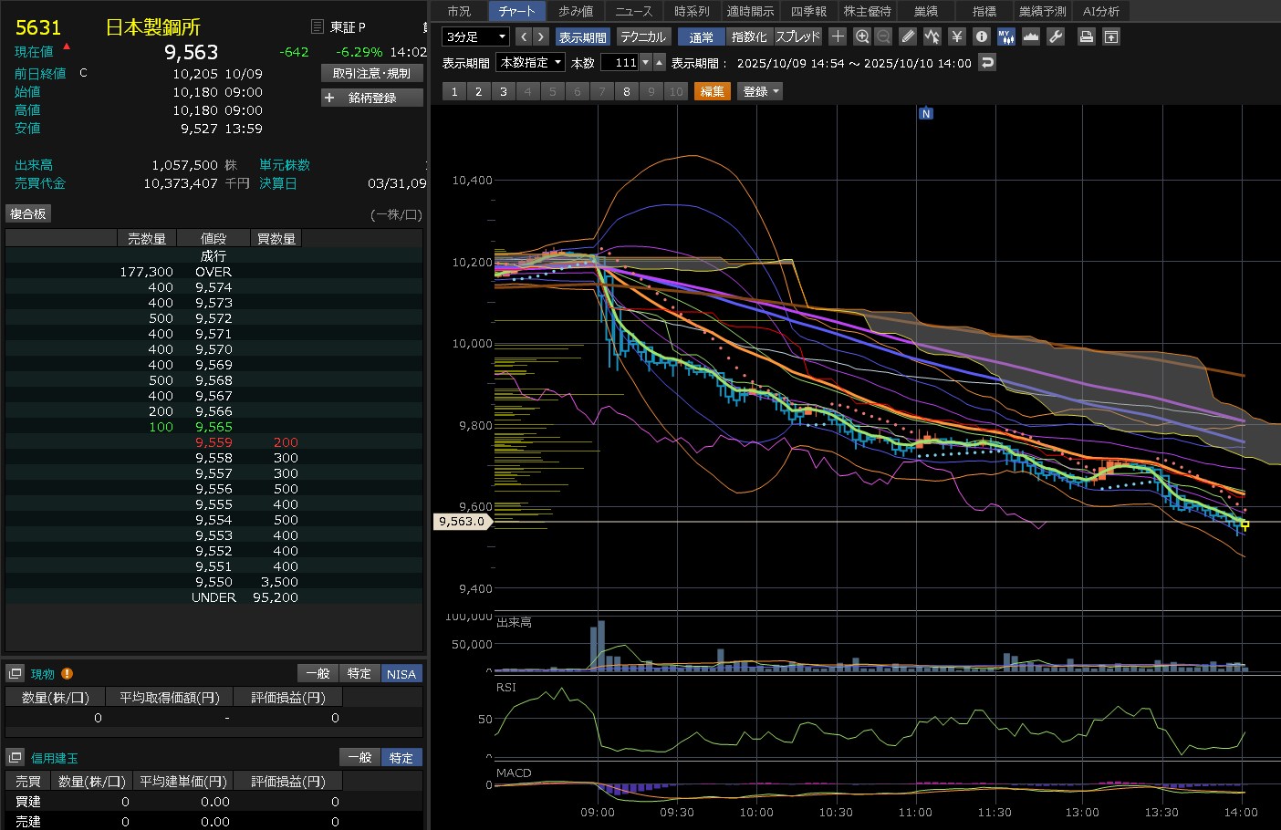 日本製鋼はさ・・・三菱重工業につられるねん。だから辛いわ。重工は買い残が多いからね。だから上がりにくいような気がする。日本製鋼所は1万超えてもおかしくないのにね。そう思って買ったら速攻で含み損。絶対見られてるわ。