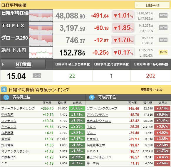 日経平均48,088.8-491.64-1.01%[15:30]米ドル/円152.65-0.41-0.27%[15:39]
