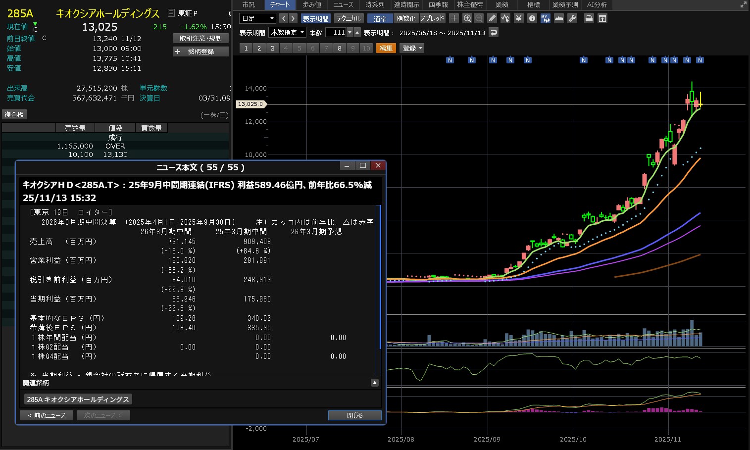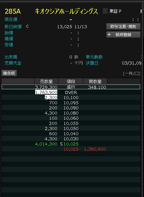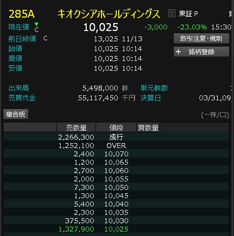 っ本来は14:20に購入すべきでした。これは大失敗です。キオクシアはストップ貼り付きですね。