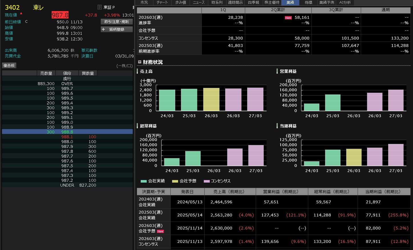 高砂のほうが褒められた決算でした。モルガンやSMBCが買い推奨してるから下げないのかな。知らんけど・・・@1020になってるわ。あ、あと東レは自社株買いがあるんやね。