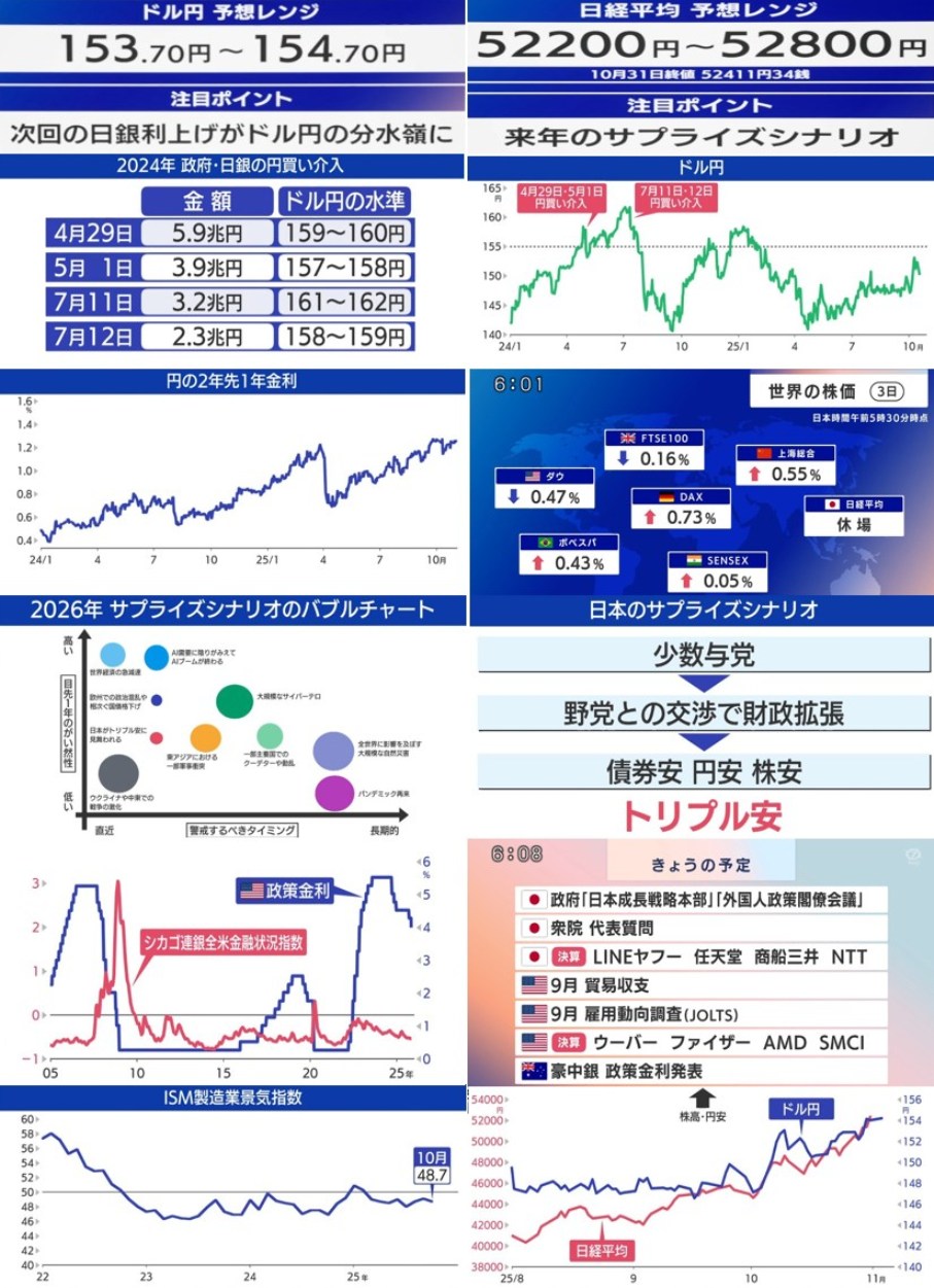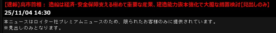 今日は半導体が弱そうですね。AMDの決算が良かったみたいですが、時間外で下げてるみたいやし・・・今日の半導体は弱いやろうね。NASサンデーも下げてるし・・・今日は造船行こうぜ!高市さん。_| ̄|○))頼む!お願い!この通り!です。気配がでてきて、ワイは持ち越したことを後悔している。ただ、なんやかんやで決算は終わってますからね。決算マタギのようなドキドキはないねん。今日は任天堂の日かな・・・全く・・・