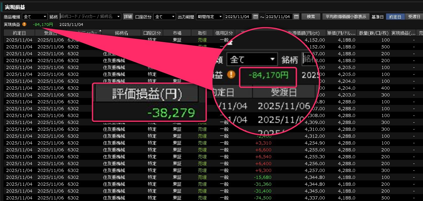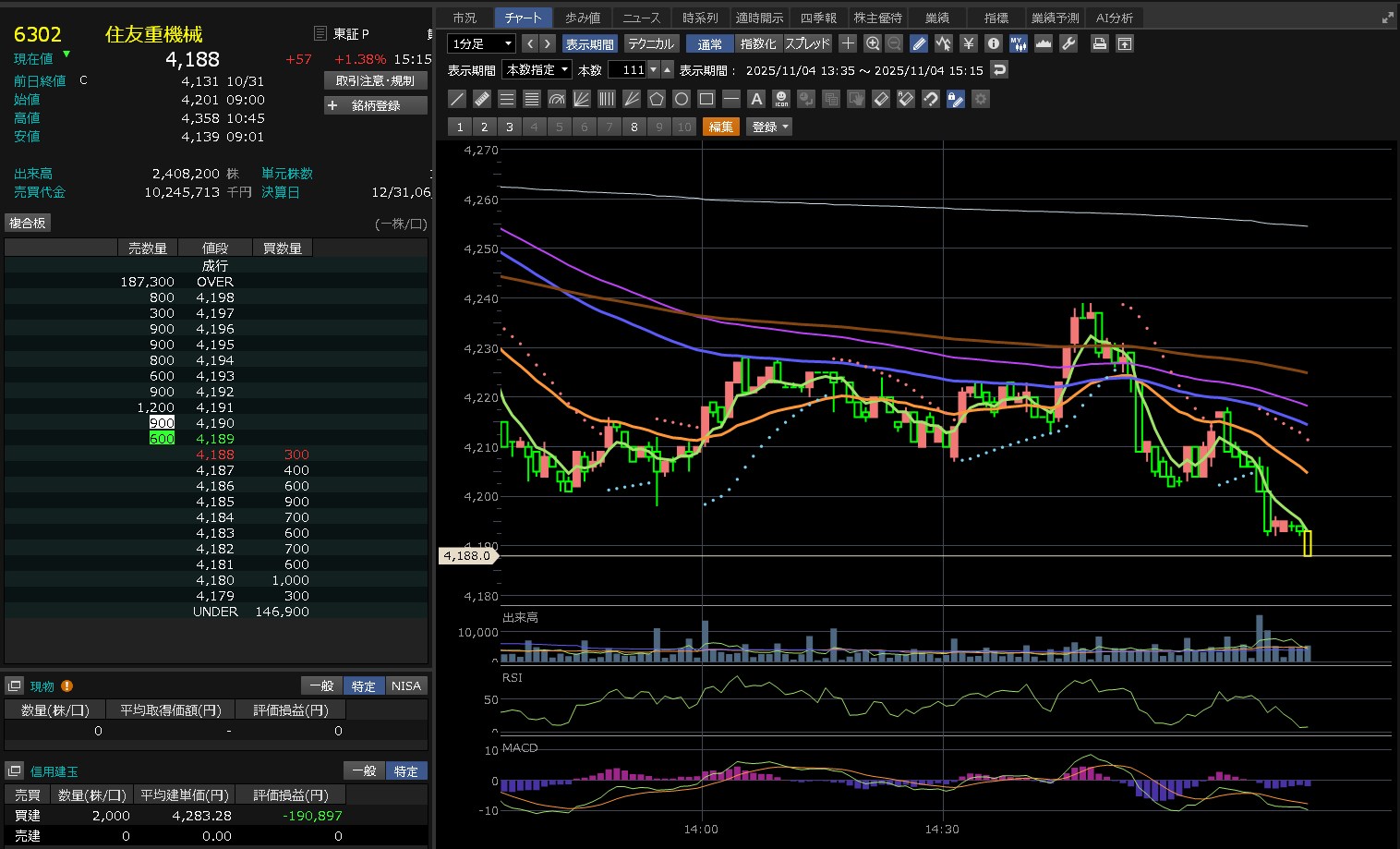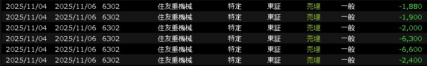 ワイの今日の取引です。住友重機械工業ばかり見ていました。