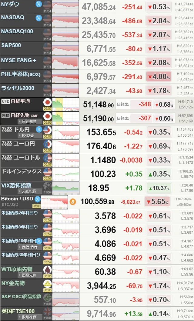 あれやったね。今日は半導体下げる気がしてたし、ニューヨーク市長が左派になるから下げだったんですよね。素直に損切りして空売りしてたら良かったよ。雰囲気は掴んでたのにね。もう落ち着くまでゆっくりするしか無いわ。ちょっと行きすぎやけどね。