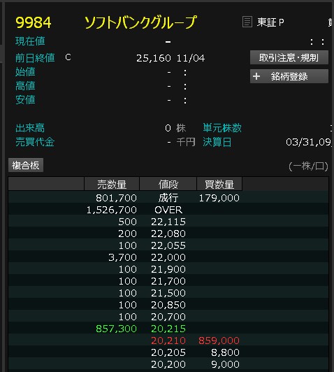 ソフトバンクがまだ寄らない。こいつほんまに日本株のガンやで!あ、寄った。アドバンソフバンともに8%近い下げ、これで日経は▲1110になった。▲2.2%安やわ。アドバンソフトバンクエレクで日本株の下げをカバーできる。