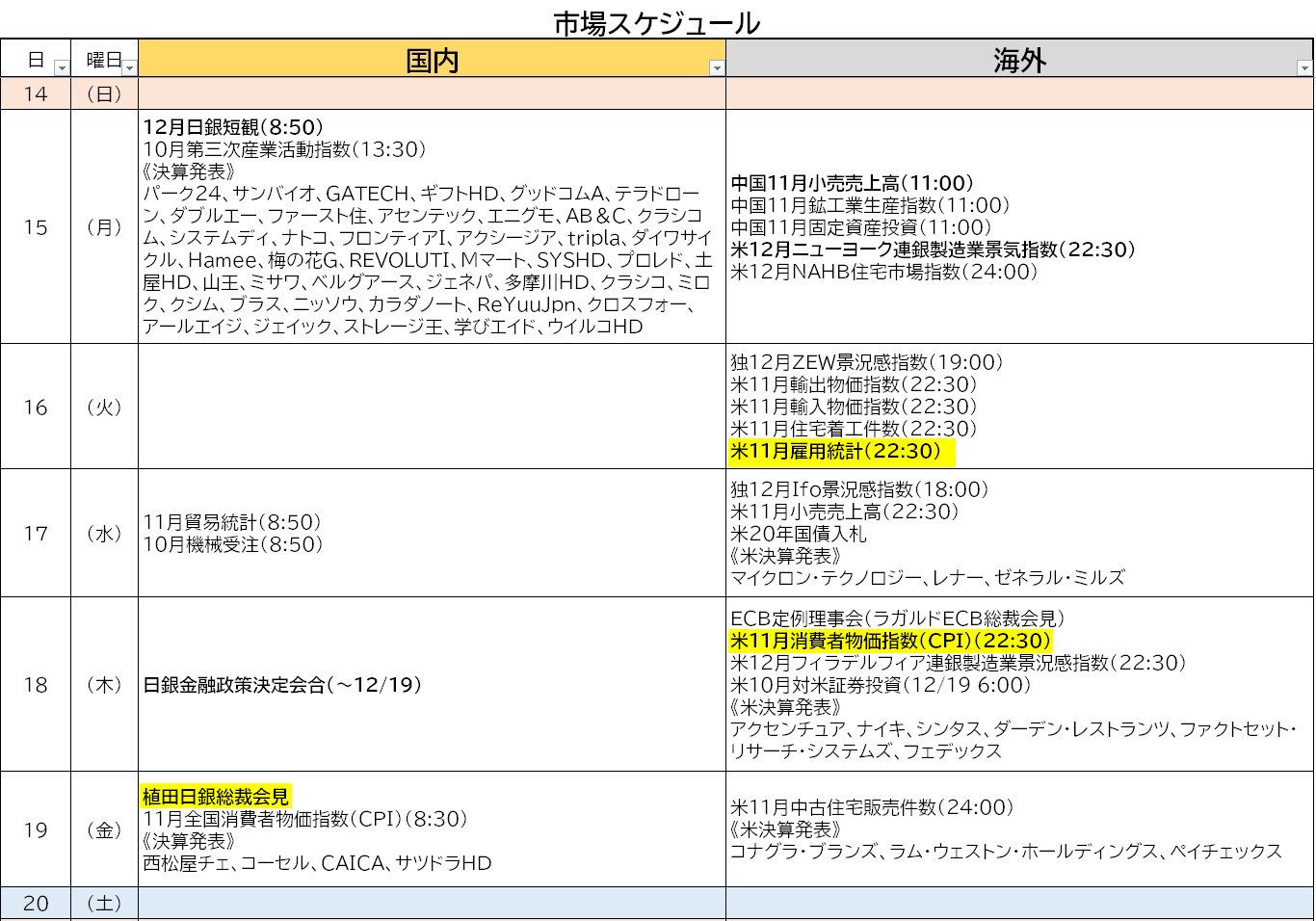 今年の漢字は「熊」ってね・・・メディアに流され過ぎや!アホかよ(´・ω・`)って偉そうに思いながら、クマってさベアやん。ベア相場入って売り方からすればいいけれど、買い方からすればね・・まだまだブル相場であって欲しいんやでって思ってるからこそ、「熊」って嫌やったんやって思いながら、今週の予定は以下の通りです。
