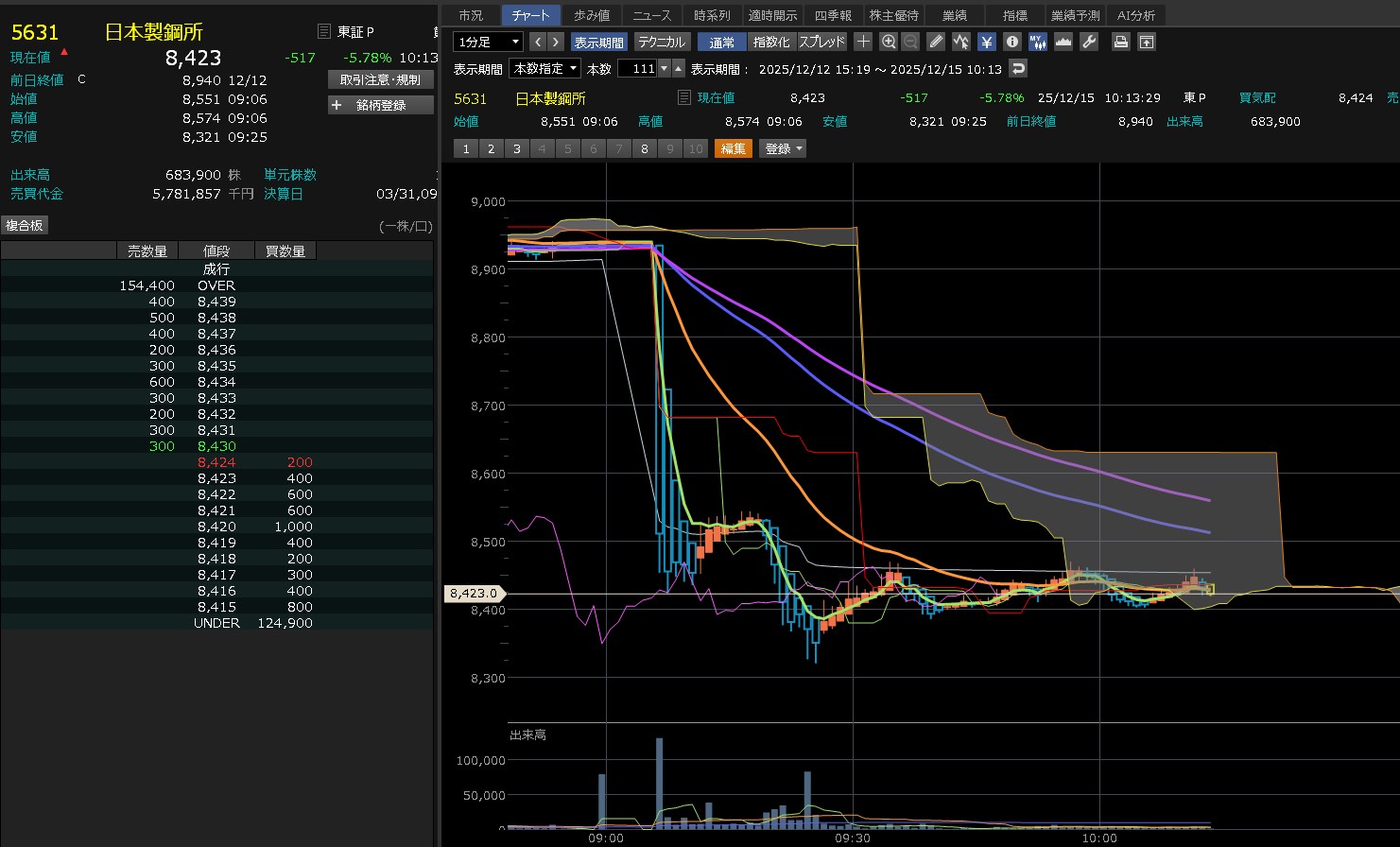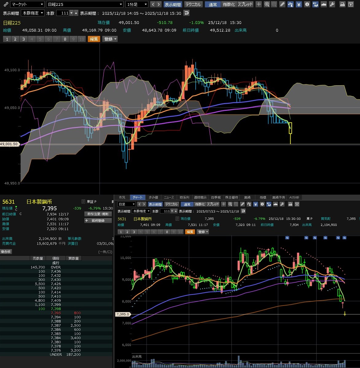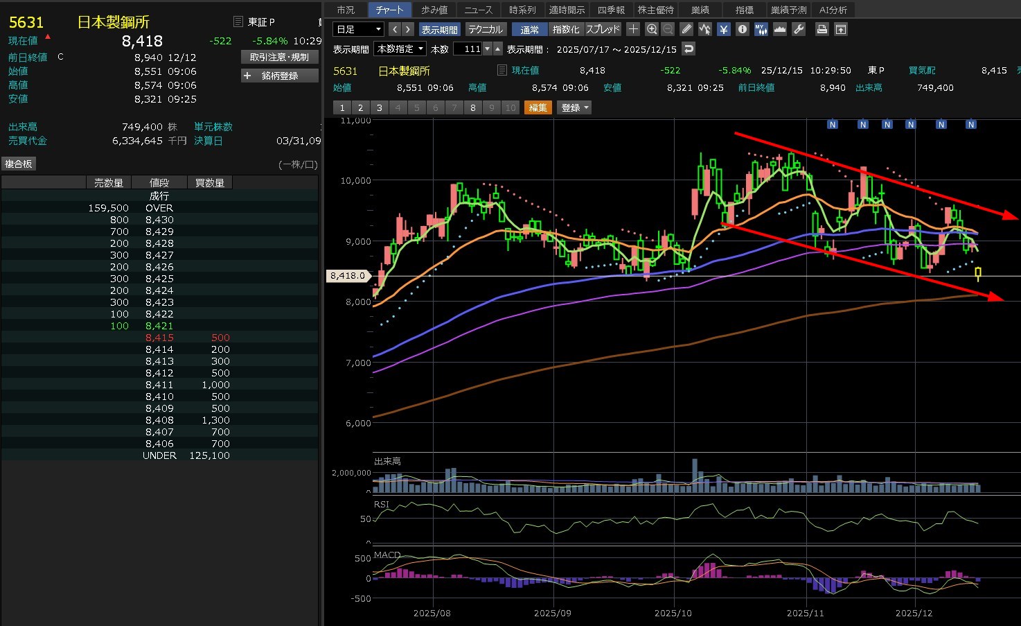 日足は下降トレンドやけど・・・どうなるやろうね。日本製鋼・・・にしても日経弱いな・・・