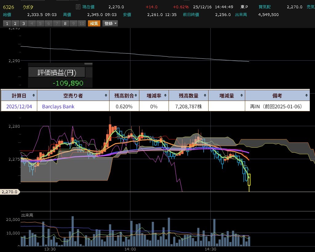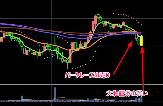 日経がリバってきたけれど・・・ワイが買った銘柄はおそらく救われないな・・・そんな気がする。なかなか厳しい。チャート的に完全に上に取り残されたやからが多いねん。ただ、時間はいっぱいある。そして日経はおそらくココから上がれば上昇に乗れる。いつも買うのが早いんや・・・そしてこの手の銘柄でいつも失敗する。全然上がらん。更には・・・空売りネットで調べるとバークレイズがいる・・・このクソ機関本当になんやねん・・・