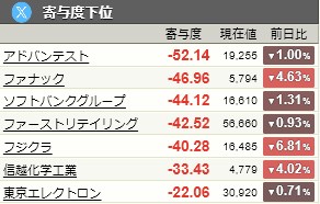 寄与度ベスト10に四天王入ってるね。リクルート強いわ。前場乙でした。全然やんけワイ・・・トホホ( ;´д`)ノ|柱|
