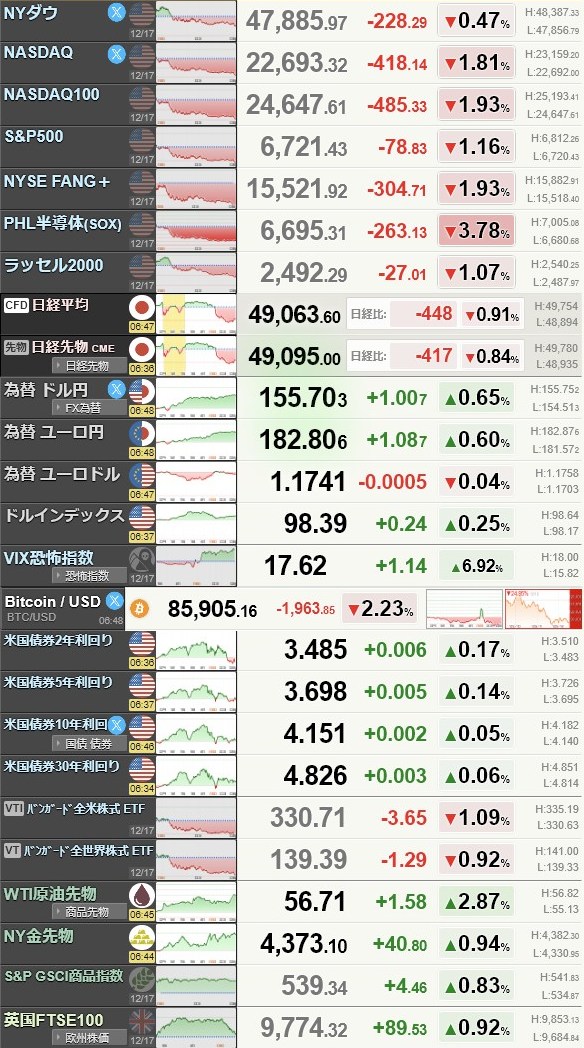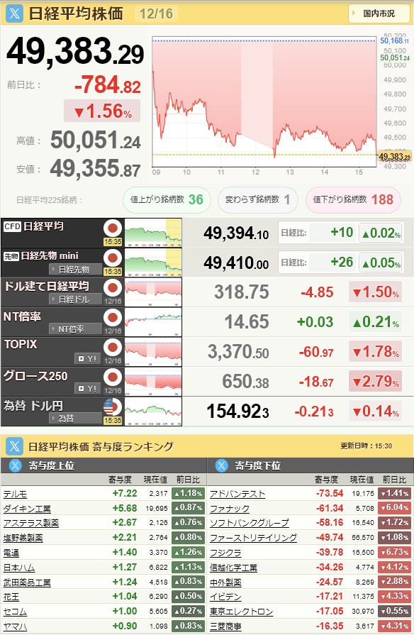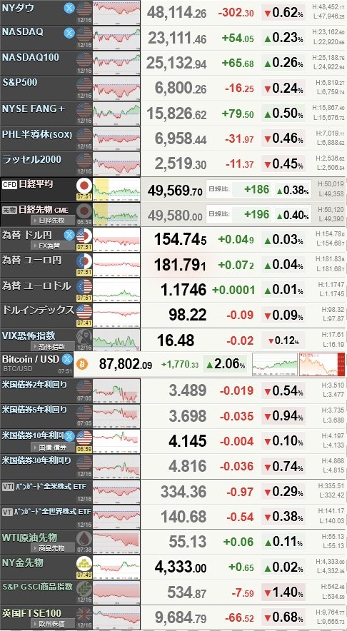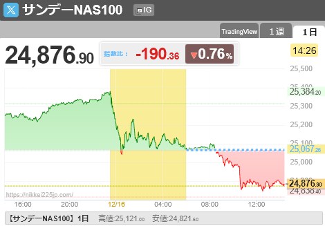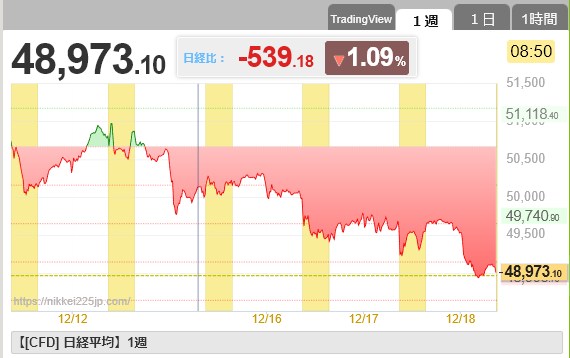 - 4 R7.12.17 日銀金融政策決定会合を明日に控えて折り込みつつあるのか?この2日で1400円以上下げた日経は魔の水曜日にどのようになるのでしょうね・・・(´・ω・`)