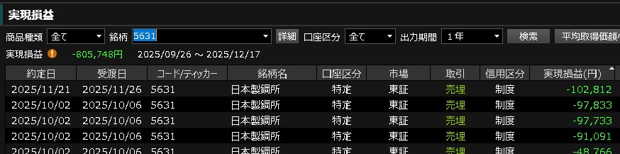 三度目の正直で持ち越します。核融合炉の間接部品関連として・・・軍需だし原子力だし、ゴールドマンのレーティングも今日で終わるでしょう。あとは買われるだけ・・・殆どが買い推奨ですからね。おそらくしばらく耐えれば上げていくと思ってる。含み損は7万円です。