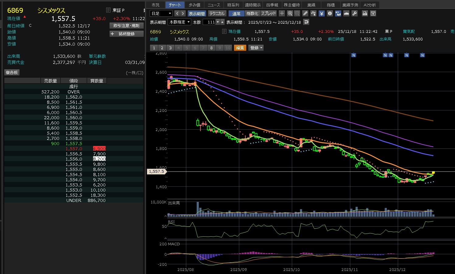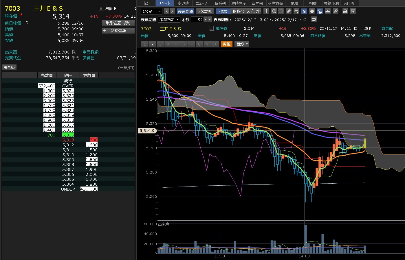 13:08です。この時間帯は動かんからみてても仕方ないよね。イビデン買おうか迷ったけれど・・・これ見てたら買えないな。