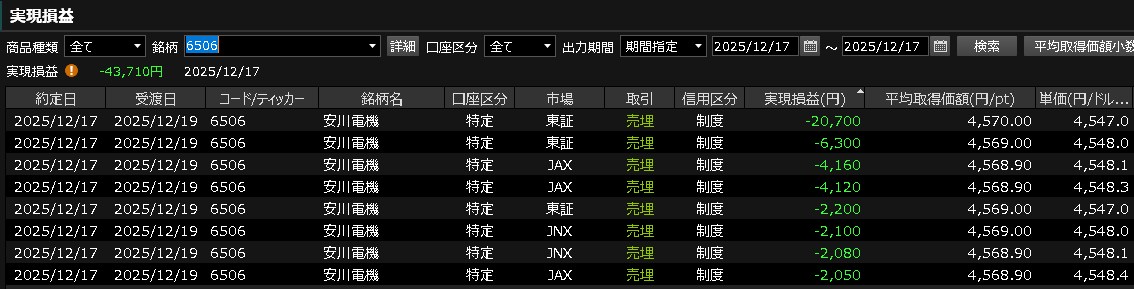 明日上げると思うねん。ハイテク上げると思うねん。まぁええか・・・ゆっくり寝ますわ。ノーポジでフィニッシュです。今日の取引は以下のとおりです。