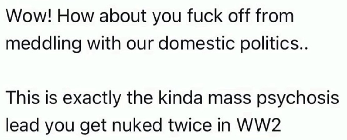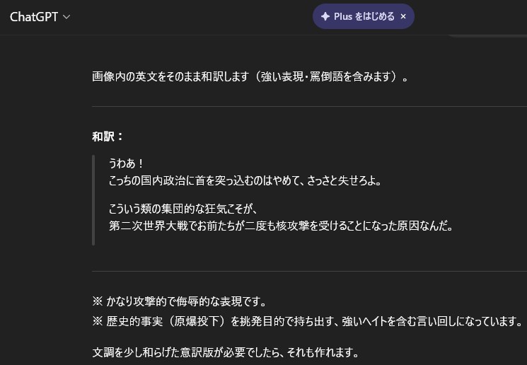 本当にワイは気にしてなかったんや。ツリ目ポーズなんて・・・ワイはタレ目やし・・・ただ主語を大きくして日本人を馬鹿にするようなコメントは日本人であるワイは気分が良いものではないし、ゆっくりフェードアウトするよ。さよならフィンランド・・・fin. チャットGPTに和訳してもらったよ。