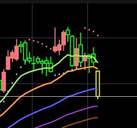 ゴールドマンの目標株価下げだけで・・・あんなにも売られるんやな。きっついわ。ワイの買ってる株全然動かんわ・・・平均足で直近の30分はこんな感じやで・・・ってワイが売ると上げるな・・・悔しいからもうええわ。