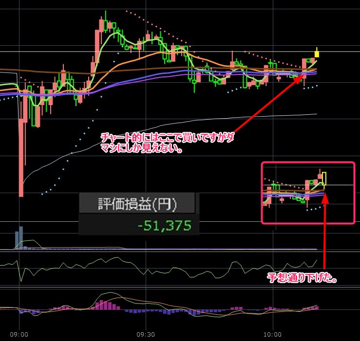 この流れは後場寄り付きにず取んと下げるパターンやわ。もう助からん。引けに処分するわ。それまでにメイクドラマがあるのを期待する。ホンマにクソやわ。こうなる気はしてた・・・まぁタラレバならなんとでも言えるわな・・・