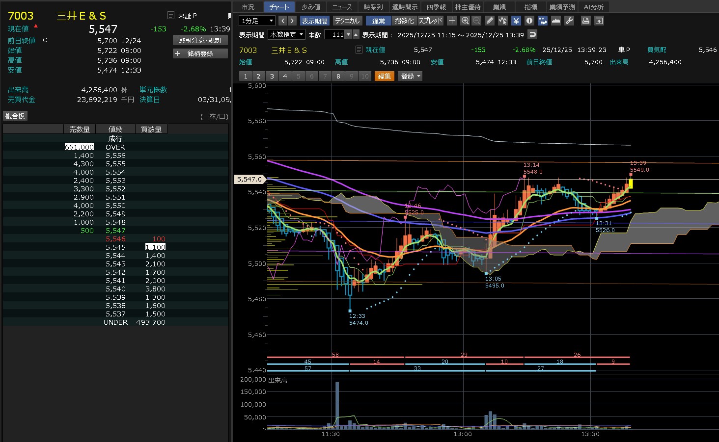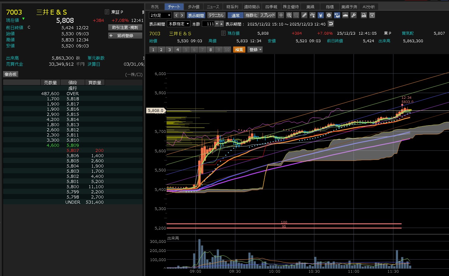 三井ESじわじわ右肩上がり・・・ホンマに寄り付きで買ったのを売ってしまって後悔している。しかも5550で売ってるねん。アホやろ・・・ワイ。