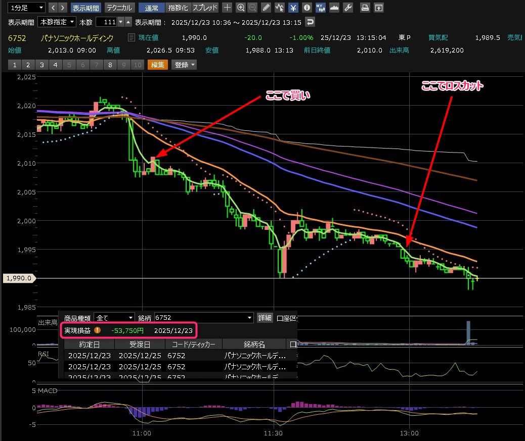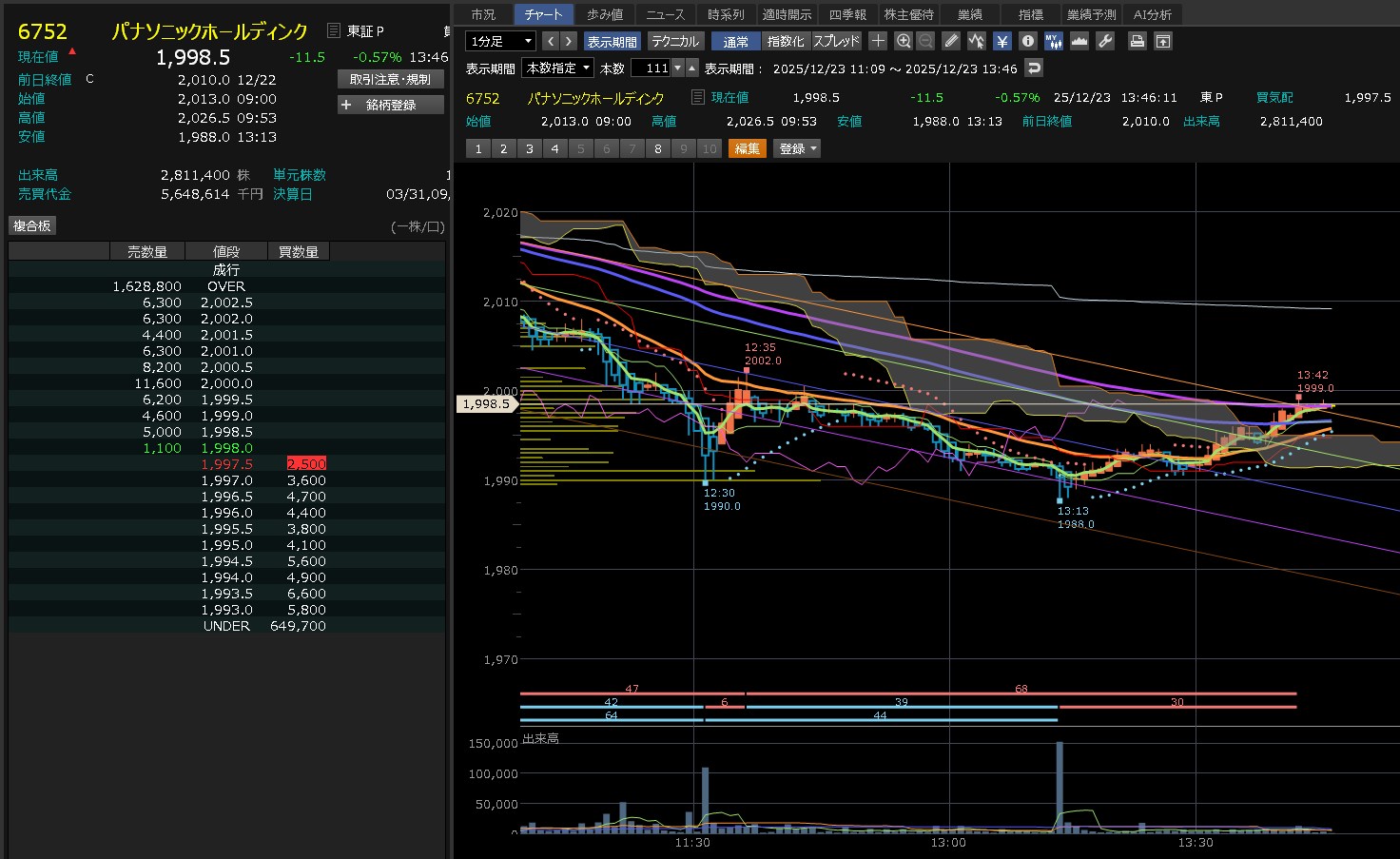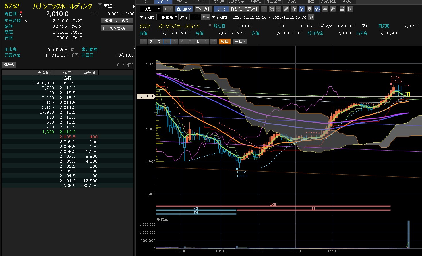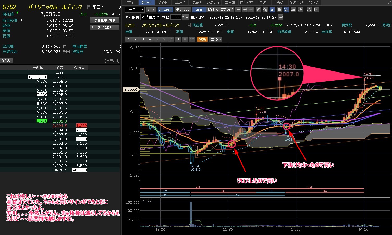 さて、たぶん、ここから上げていくと思うけれど、今日はここまでや。もう逃げた。ノーポジでフィニッシュや。色々学びになったわ。今日はね。パナソニック持ってたら+2.5万円やったわ。結局引けにかけて戻しとるやんけ・・・ワイの5万円のロスカットは何やったんや。現在@2009.5やわ。