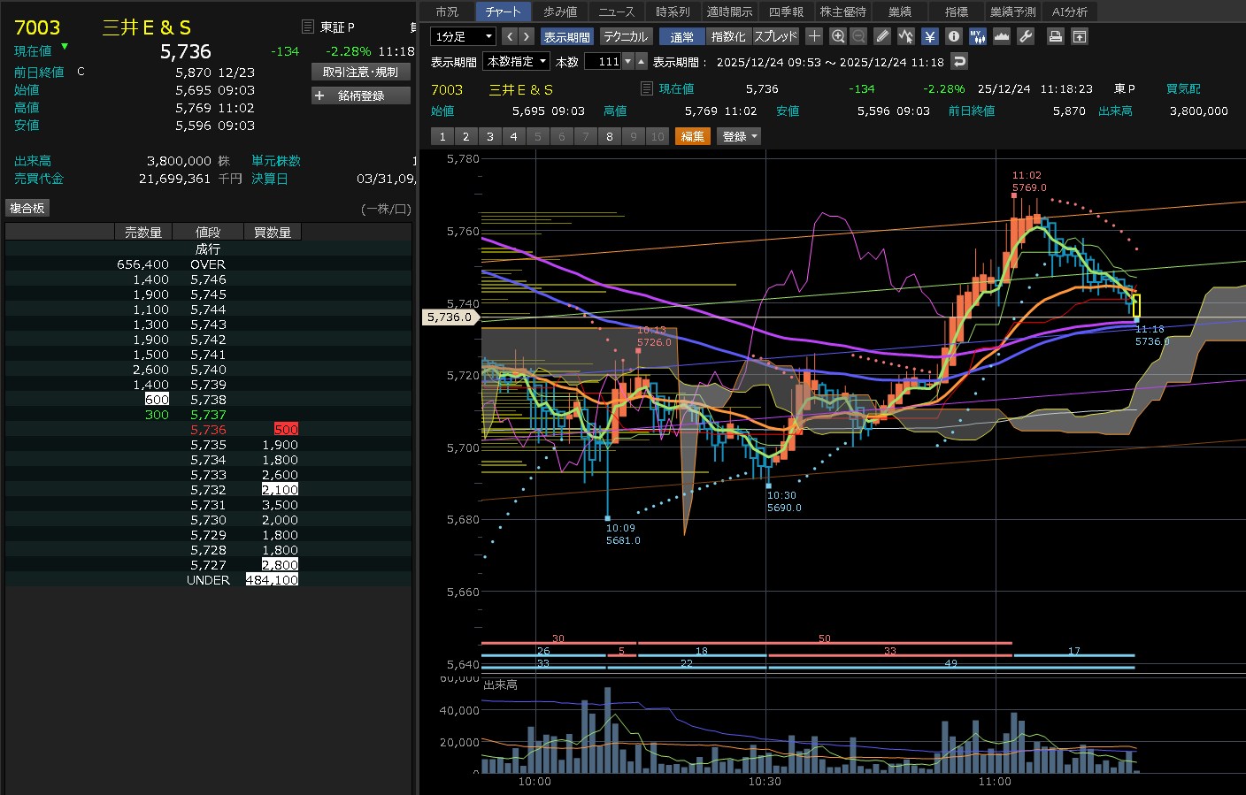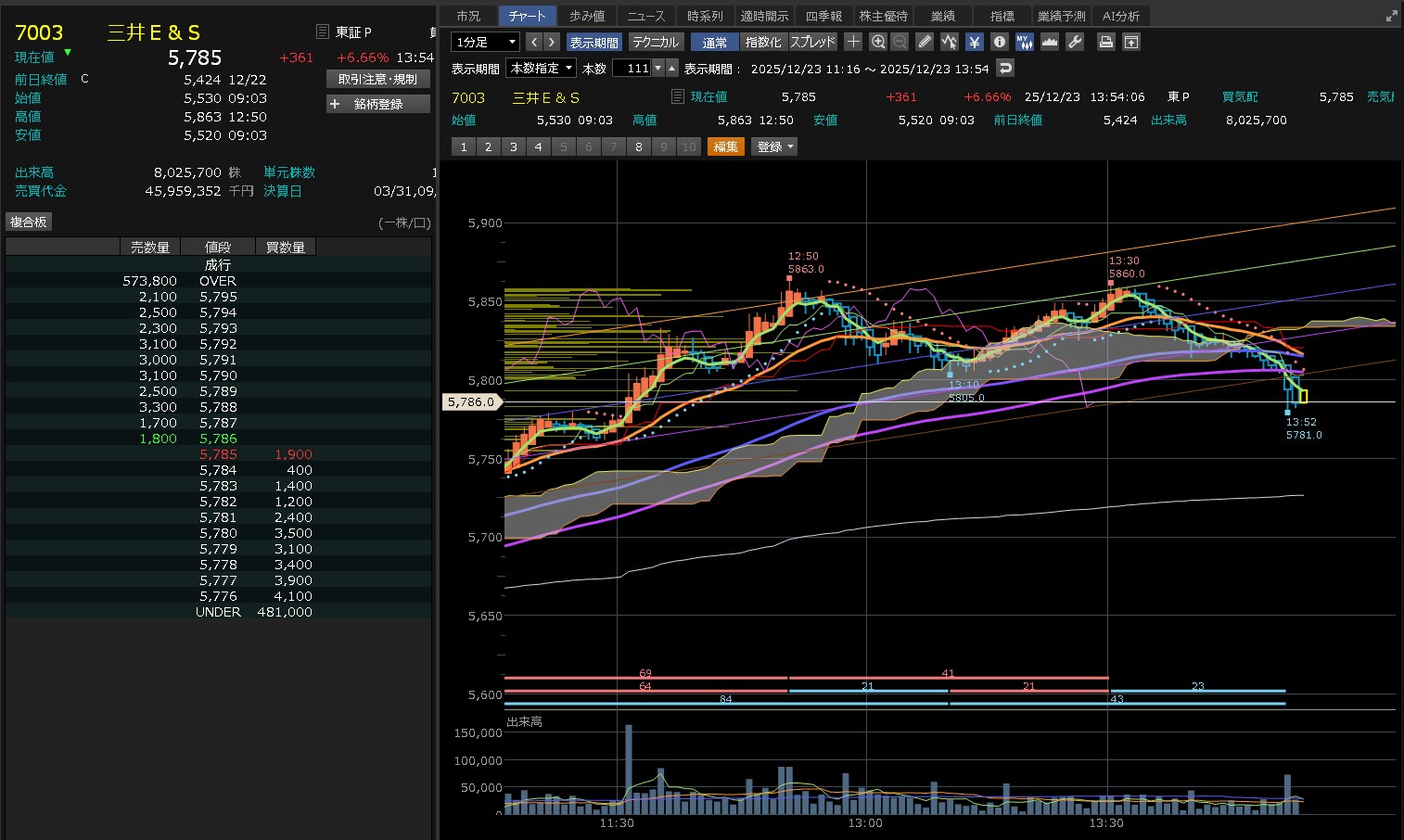 三井ESもなんやかんやで強いな。5680円台をキープしている。買わんけどね。今日はワイはホンマに含み損抱えて苦しかったわ。